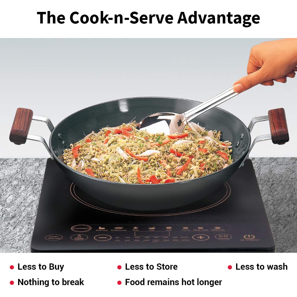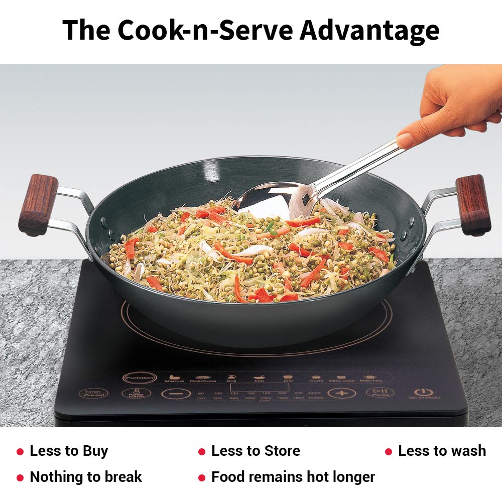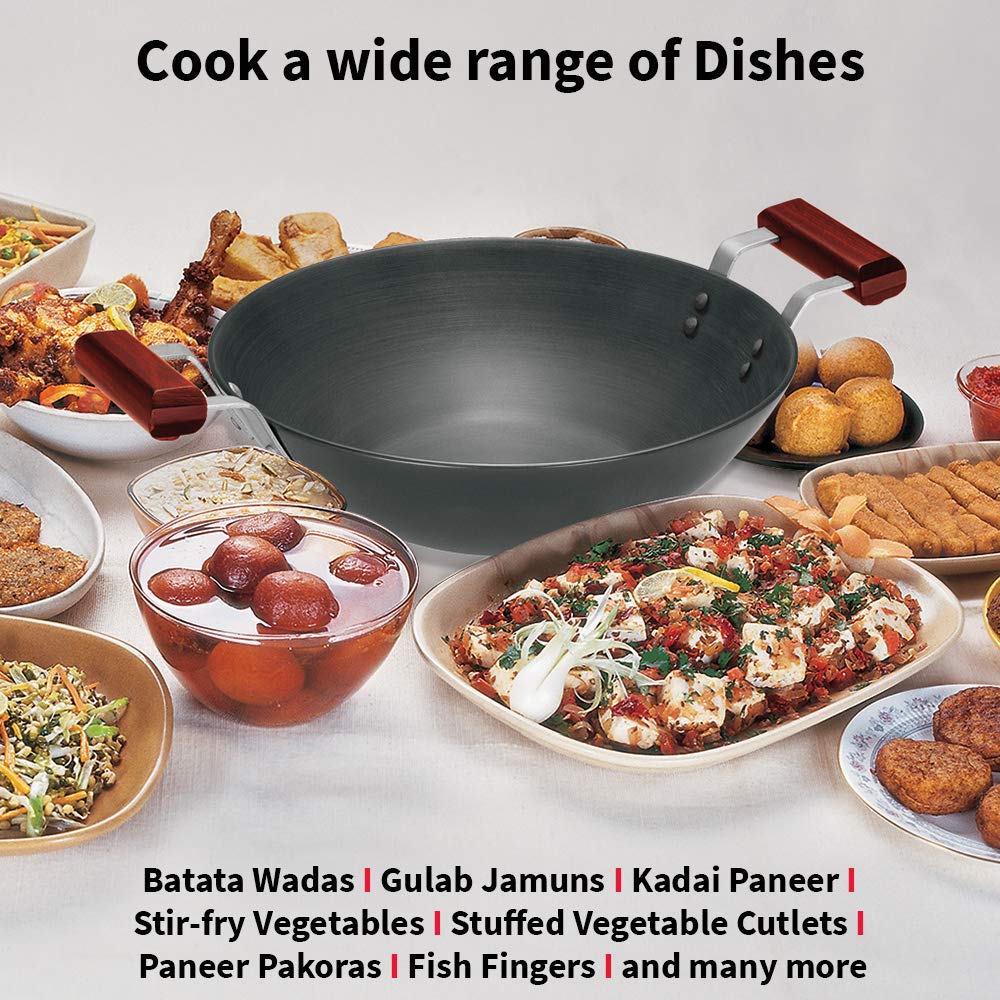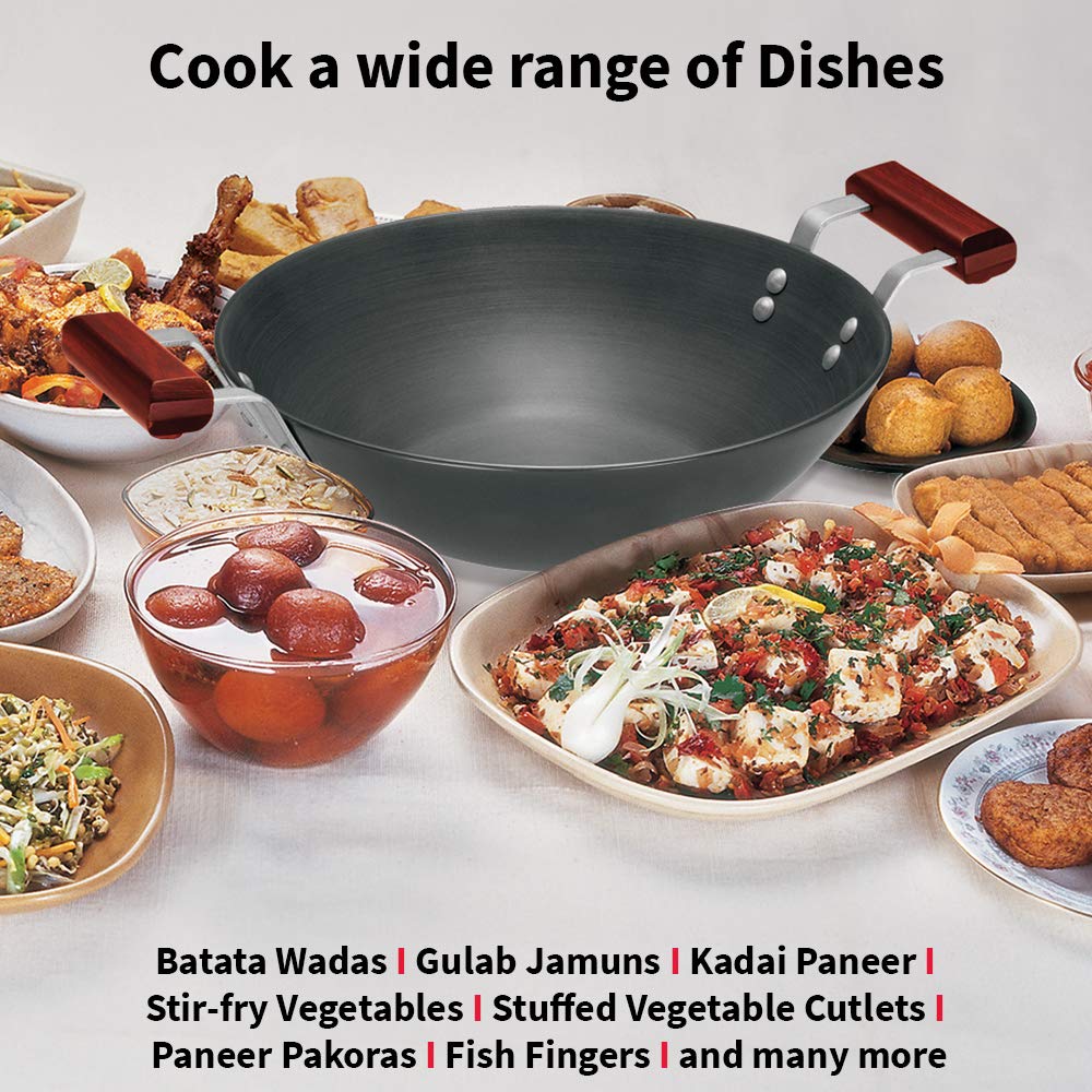 - Heavy Gauge Body (3.25 mm Extra-Thick) - Cooks fast & evenly. Food stays hot longer