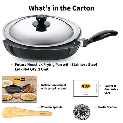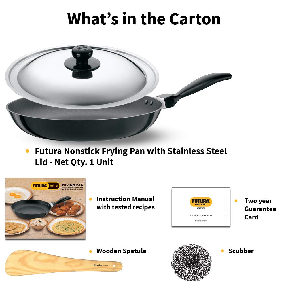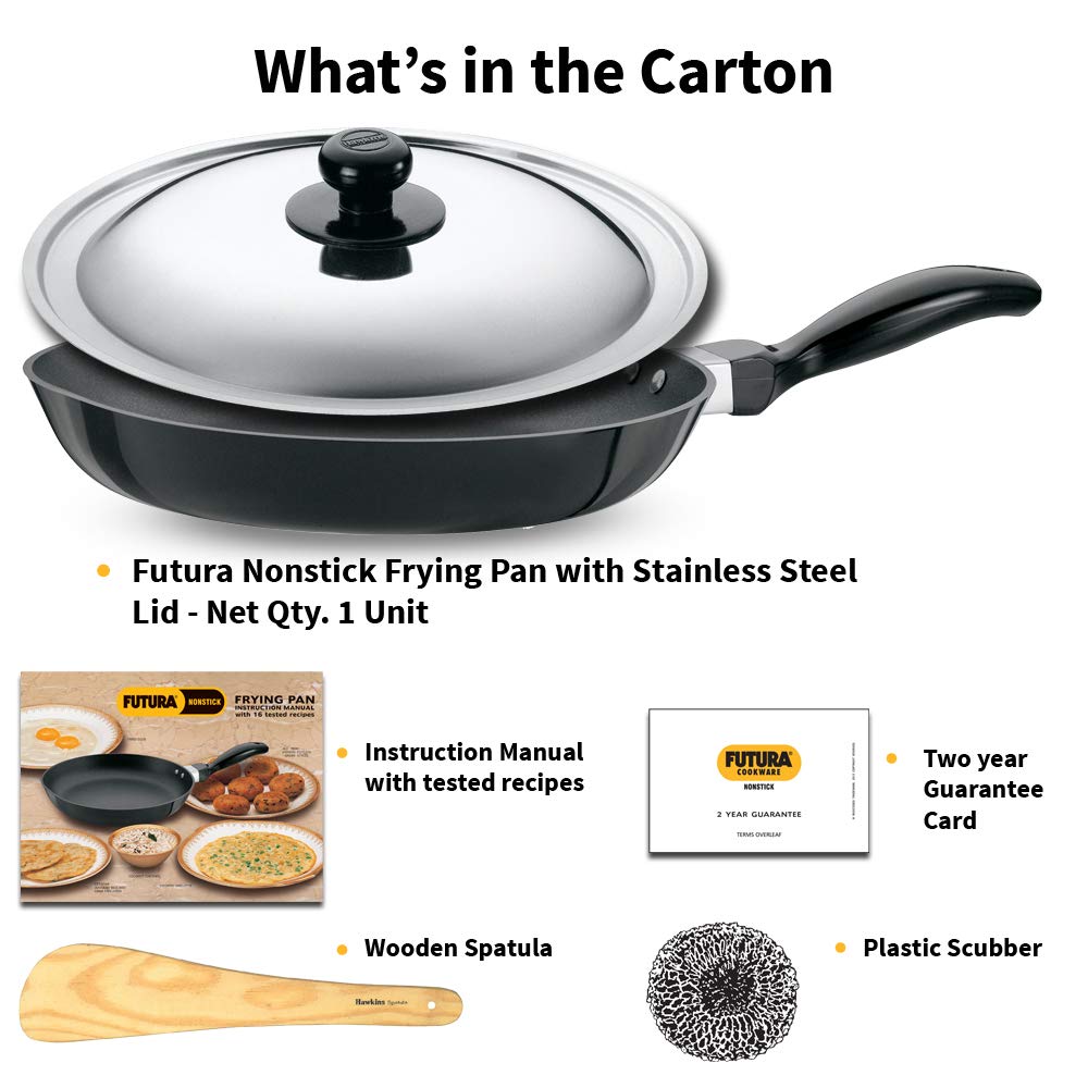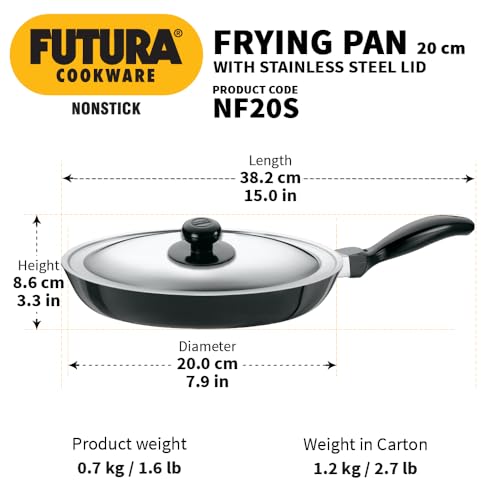 Hawkins Futura 20 cm Frying Pan, Non Stick Fry Pan with Stainless Steel Lid, Small Frying Pan, Black (NF20S)