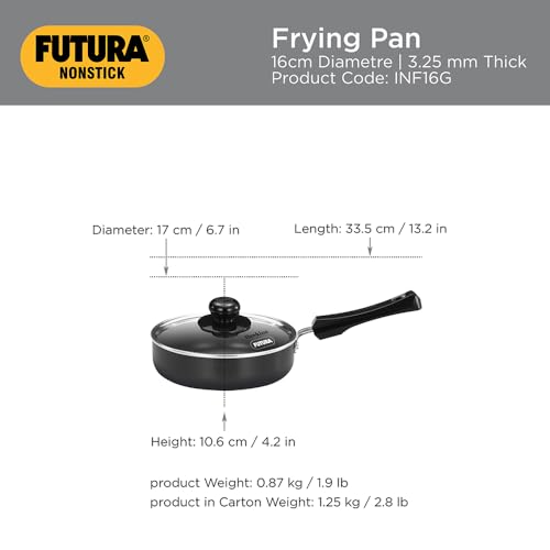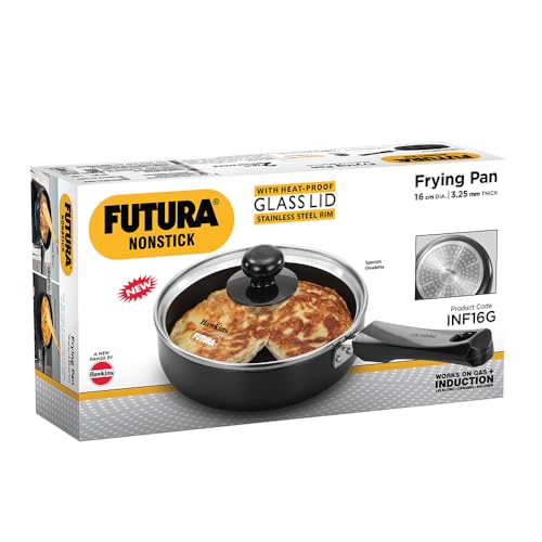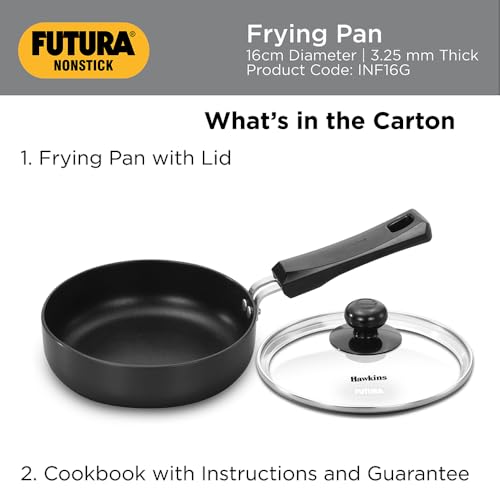 Hawkins Futura 16 cm Frying Pan, Non Stick Fry Pan with Glass Lid, Induction Omelette Pan, Small Frying Pan, Black (INF16G)